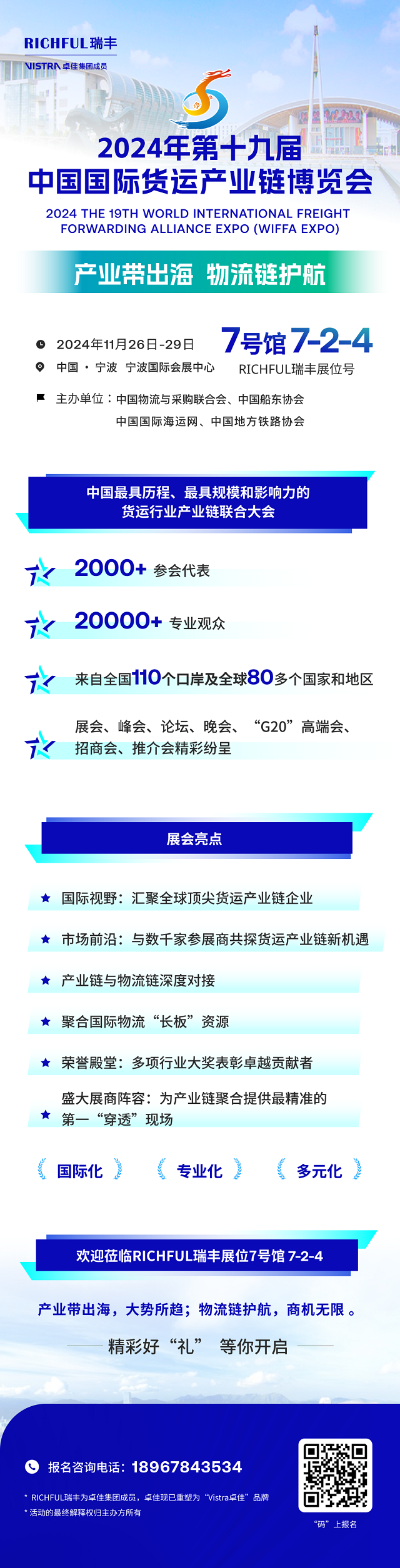 展會(huì)預(yù)告 | RICHFUL瑞豐誠(chéng)邀您參加2024年第十九屆中國(guó)國(guó)際貨運(yùn)產(chǎn)業(yè)鏈博覽會(huì)