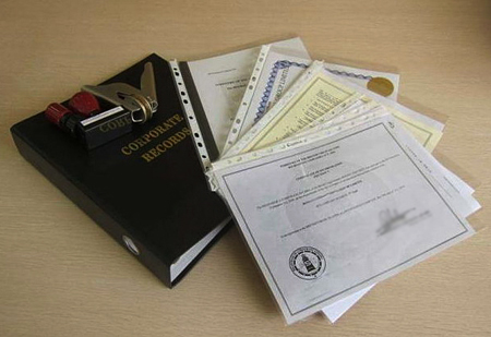 制作文件盒:文件盒內(nèi)含章程、股票本、記事冊、印章等。