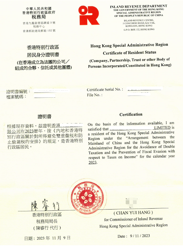 在國際間加強稅務合作和不斷變化的營商環境的背景下,香港特別行政區稅務局(以下簡稱“稅務局”)重新審視了發放居民身分證明書的處理方法,并宣布自2023年6月12日起,稅務局將根據相關的全面性避免雙重課稅協定/安排(以下簡稱“稅收協定”)中“香港特別行政區居民”(以下簡稱“香港居民”)的明確定義,決定是否可以向申請人出具香港居民身分證明書。