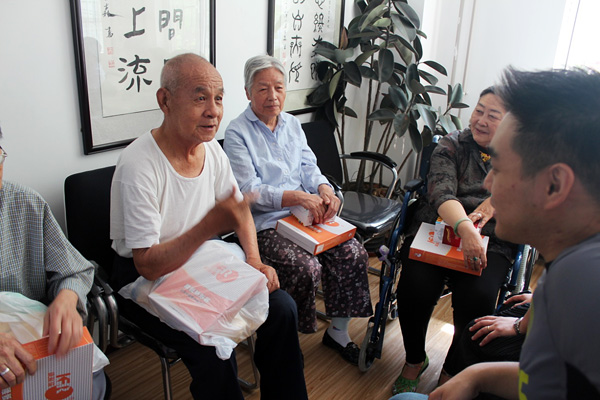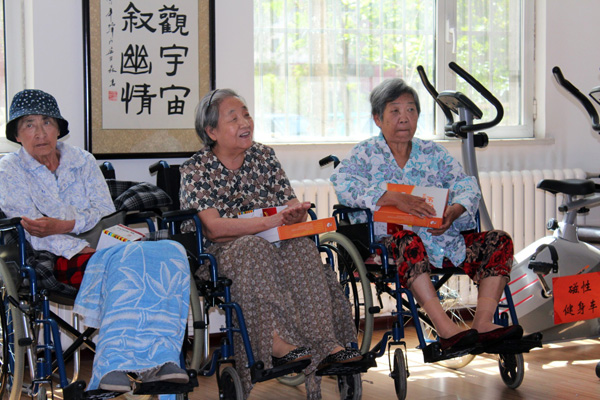 我們還和老人們一起唱起了熟悉的歌曲,一首中國心,一首拍手歌,老人們開心的和我們一起大合唱,隨著節(jié)拍拍動雙手,把整個氣氛推到了一個小高潮。
