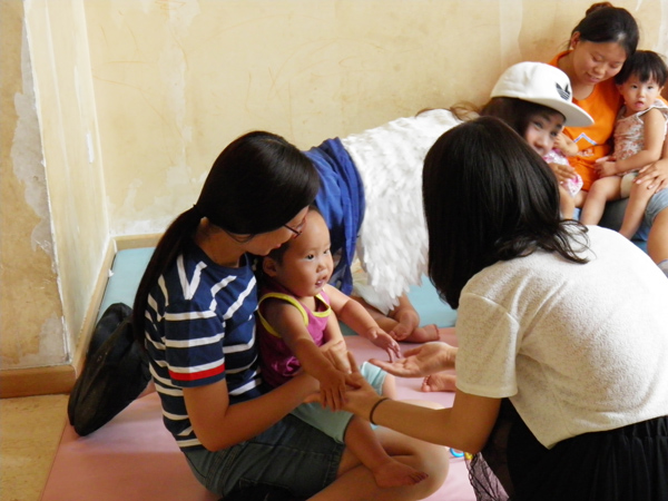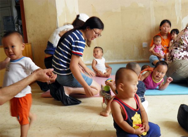 慢慢走近主樓,主樓共三層,二層跟三層是所有較小的嬰兒和生病較重的孩子的地方,所有探訪人員及義工只可以在室外娛樂區及一樓娛樂區與孩子們玩耍。進門時心里都是酸酸的,但看到孩子們的笑臉時一切都變得不重要了。